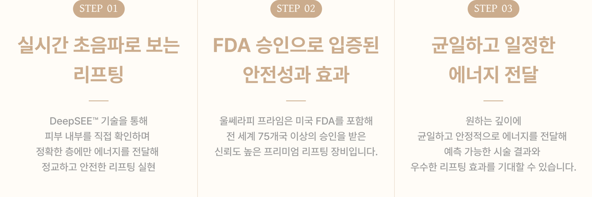 이번에 최신 버전인 울쎄라피 프라임(Ultherapy® Prime) 으로 업그레이드 되었습니다.