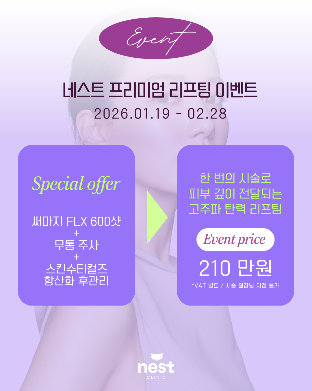 Nest Clinic offers treatments in a comfortable, nest-like atmosphere. With advanced medical technology and personalized care, we provide safe and effective skin lifting and regeneration treatments. Experience quick recovery and satisfying results in a relaxing environment.